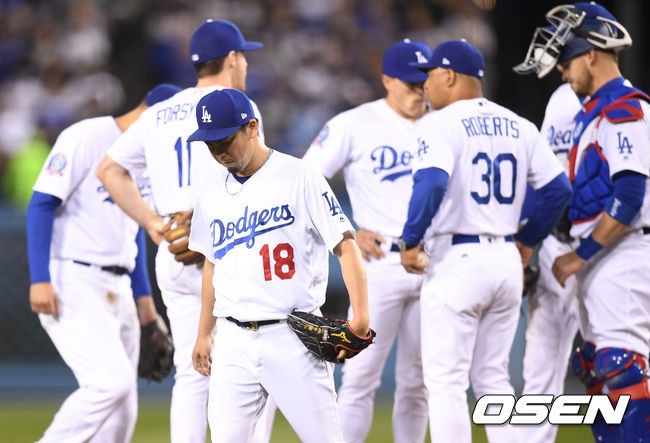 2사에서 크리스 오윙스가 다시 2루타를 쳤다. 다저스 코칭스태프가 마운드에 올라갔다. 다이슨이 1타점 2루타를 추가했다. 참다못한 다저스는 마에다를 내리고 로스 스트립플링을 올렸다. 스트립플링이 남은 아웃카운트 하나를 잡아 겨우 이닝을 마쳤다. / jasonseo34@osen.co.kr