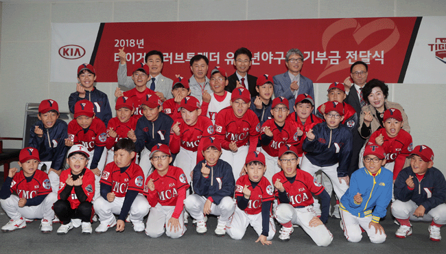 KIA와 기아차는 지난해 ‘타이거즈 러브투게더’를 통해 적립한 기금(5억3000만원) 중 일부인 7500만 원을 광주YMCA 유소년 야구단 지원금으로 전달했다.