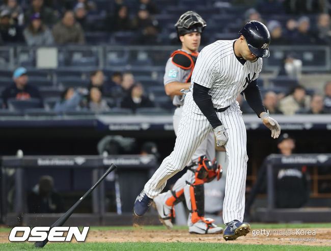 최근 3경기 12타수 무안타 침묵에 빠진 스탠튼은 시즌 타율이 1할9푼7리(66타수 13안타)로 떨어졌다. 지난 11일 이후 5경기 만에 다시 1할대 타율 추락. 스탠튼의 침묵 속에 양키스도 1-9로 완패했다. 양키스 홈팬들은 스탠튼에게 또 야유를 보냈다.