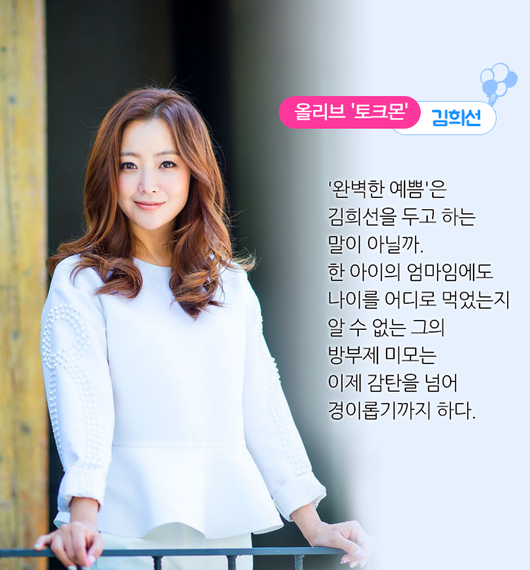 '완벽한 예쁨'은 김희선을 두고 하는 말이 아닐까. 한 아이의 엄마임에도 나이를 어디로 먹었는지 알 수 없는 그의 방부제 미모는 이제 감탄을 넘어 경이롭기까지 하다.