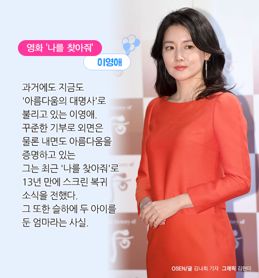 과거에도 지금도 '아름다움의 대명사'로 불리고 있는 이영애. 꾸준한 기부로 외면은 물론 내면도 아름다움을 증명하고 있는 그는 최근 '나를 찾아줘'로 13년 만에 스크린 복귀 소식을 전했다. 그 또한 슬하에 두 아이를 둔 엄마라는 사실. / nahee@osen.co.kr