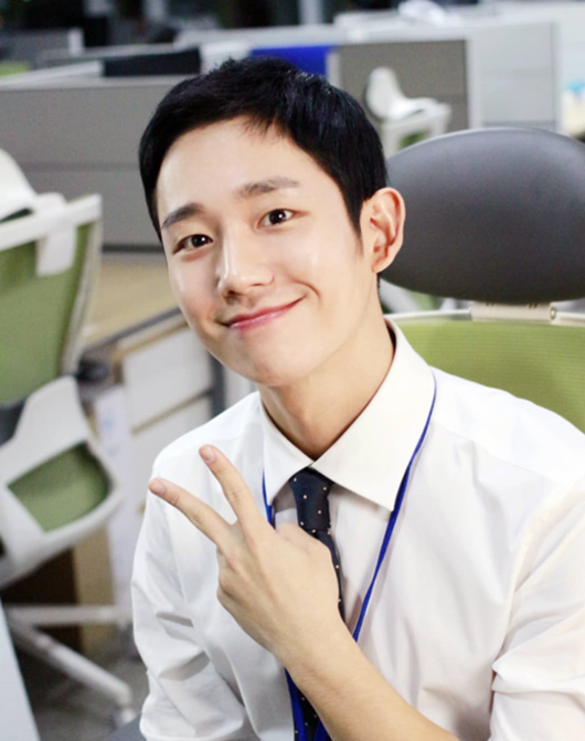 사진에는 JTBC 드라마 ‘밥 잘 사주는 예쁜누나’ 촬영 현장에서 활짝 웃는 미소와 함께 손가락으로 브이를 해보이는 정해인의 모습이 포착돼 있다.