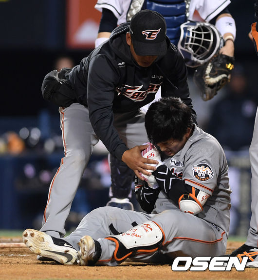 한화는 이날 두산에 4-5로 역전패하며 3연승 행진을 마감했다. 승패보다 더 걱정되는 건 최재훈의 상태였다. 한화 관계자는 "손목이 많이 부어올라 아이싱을 했다. 병원에서 정밀 검진을 할 예정이다"며 "경기를 진 것보다 최재훈의 상태가 걱정이다"고 말했다. 최재훈을 대체할 자원이 마땅치 않기 때문이다.