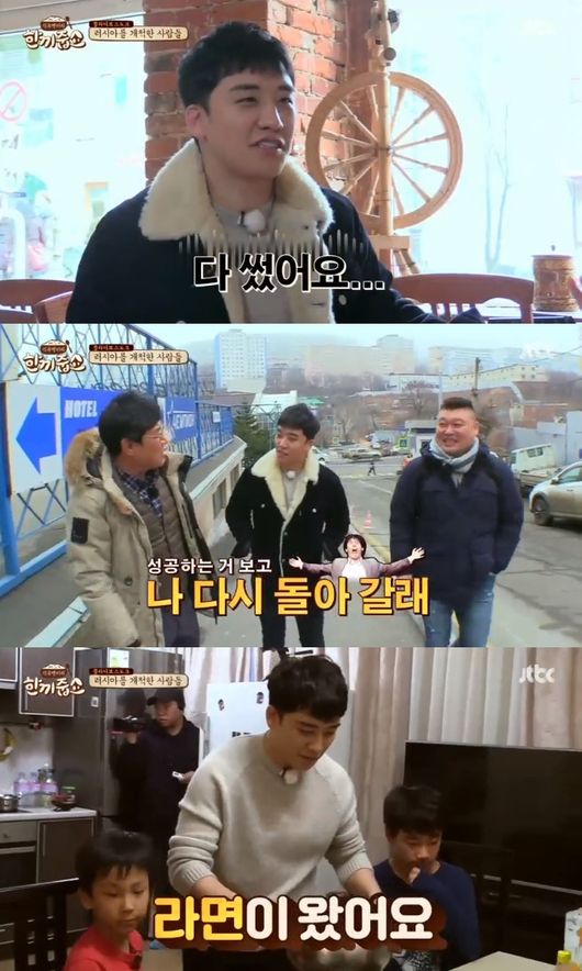 승리는 지난 18일 방송된 JTBC '한끼줍쇼' 해외 동포 특집 2탄에 밥동무로 출연해 이경규 강호동과 함께 러시아 블라디보스토크에서 한 끼에 도전했다.