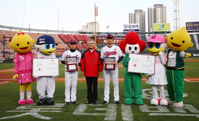 롯데 자이언츠는 지난 18일 사직구장에서 열린 삼성과의 홈경기에 앞서 부산사회복지공동모금회와 체리테이블 전달식을 가졌다.