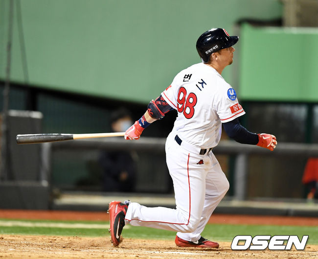 번즈는 19일 김해 상동구장에서 열린 LG와의 퓨처스 경기에 3번 2루수로 선발 출장했다. 번즈는 0-1로 뒤진 1회 1사 1루서 LG 선발 조학진의 2구째를 공략해 좌측 담장을 넘기는 투런 아치로 연결시켰다. 비거리는 120m. /what@osen.co.kr