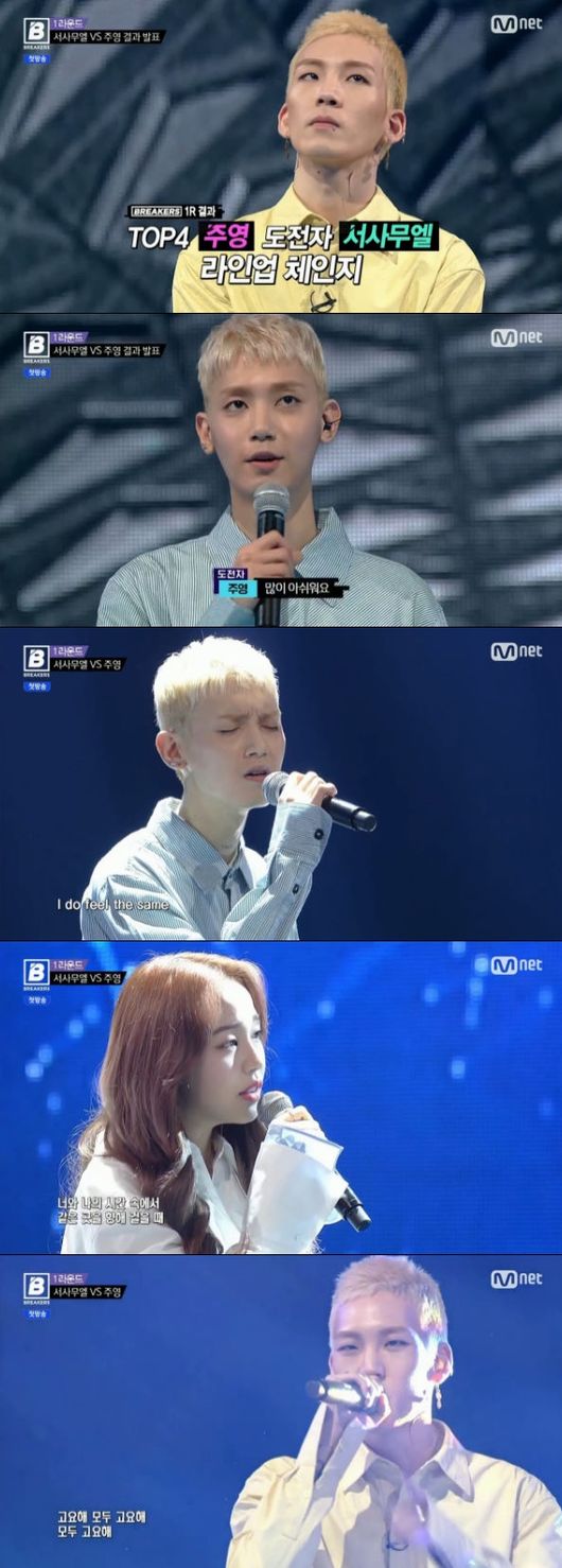서사무엘은 주영을 지목했다. 그는 “온라인 투표 때도 조회수가 가장 높았기 때문에 상위권에 있다면 붙어보고 싶었다”고 말했다. 주영은 “제가 노래를 더 잘한다”고 말했고, 서사무엘은 “제가 더 에너지가 넘친다”며 신경전을 벌였다.