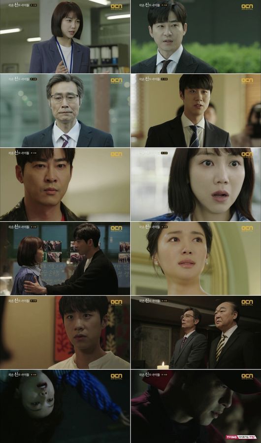 지난 21일(토) 방송한 OCN 오리지널 드라마 ‘작은 신의 아이들’ 15회에서는 천재인(강지환)과 김단(김옥빈)이 천인교회와 정재계의 자금줄 연결고리 그리고 ‘천국의 문’ 사건과의 연관성을 공개적으로 고발하며 주하민(심희섭)과 흥미진진한 머리싸움을 하는 과정이 펼쳐졌다. 극중 천재인은 대선을 일주일 앞둔 가운데, ‘천국의 문’ 사건 설계자인 대통령 후보 국한주(이재용)와 천인교회 왕목사(장광)의 24년 악행을 언론에 낱낱이 밝혀 국한주를 거세게 몰아 붙였다. 수세에 몰린 국한주 캠프의 비서실장 주하민은 천재인의 아버지인 천승환 형사가 사건을 적극적으로 조작했다는 증거를 내보여 상황을 순식간에 반전시켰다.