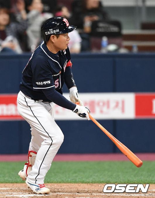 최근 컨디션이 썩 좋지 않았으나 이날 선발로 출전한 양의지는 문승원의 2구째 142km 포심패스트볼을 받아쳐 좌측 담장을 넘겼다. 전형적인 홈런 타구의 탄도가 아닌, 총알과 같은 라인드라이브 홈런이었다. /skullboy@osen.co.kr