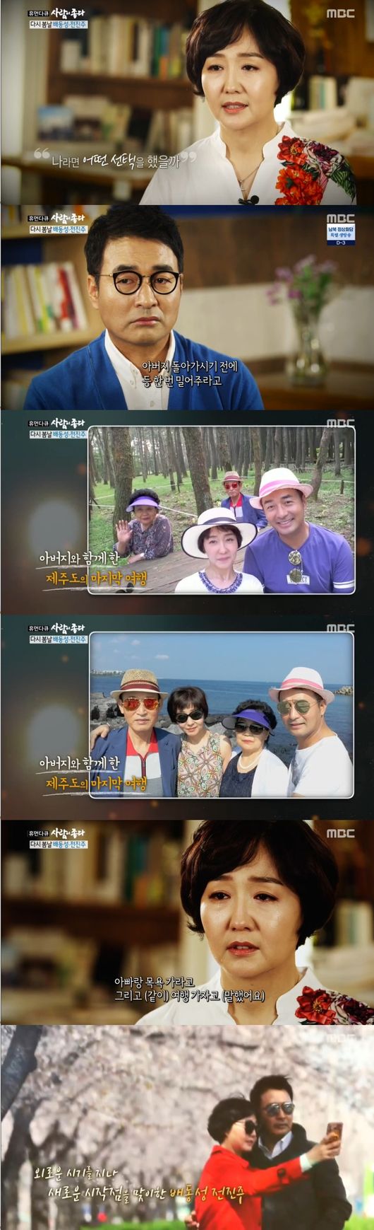 배동성은 "아버지와 함께 한 마지막 여행이었다"며 아내에게 향한 고마운 마음과 아버지에 대한 그리움으로 눈시울을 붉혔다.