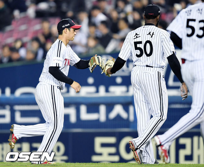3회 추가점을 뽑았다. 1사 후 오지환이 중전 안타, 박용택이 우선상 2루타를 때려 2,3루가 됐다. 김현수는 3볼에서 고의 4구. 채은성이 우측 펜스를 맞히는 2타점 2루타를 터뜨렸다. 앞선 타석에서 홈런을 친 양석환은 우익수 뜬공 아웃.