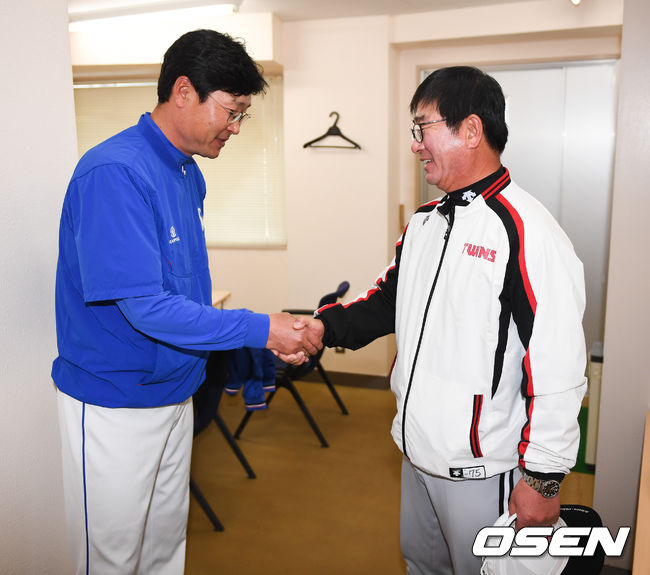 류중일 LG 감독이 친정팀 삼성 선수단과 대면했다. 김한수 삼성 감독을 만나 이야기를 나눴고, 예전 함께 했던 선수들의 인사도 받았다.