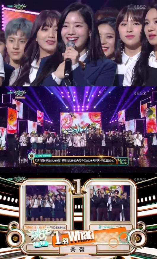27일 방송된 KBS 2TV '뮤직뱅크'에서는 트와이스 '왓 이즈 러브'가 1위 트로피를 품에 안았다.