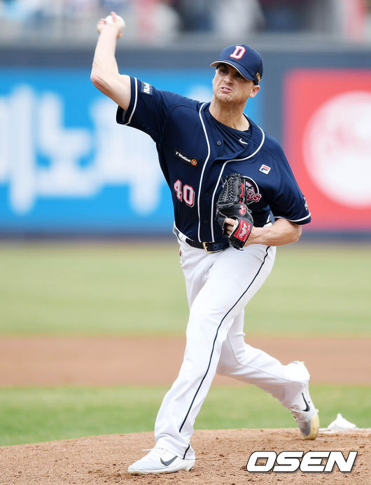 두산 베어스 세스 후랭코프가 다소 많은 투구수를 기록하며 마운드를 일찍이 내려왔지만 승리투수 요건을 갖췄다.