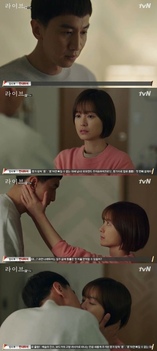 '라이브' 정유미와 이광수가 키스로 마음을 확인했다.