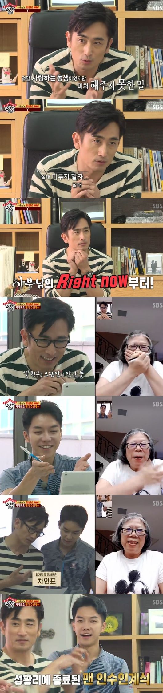 이날 차인표는 10년 된 팬이 이승기팬으로 돌아섰다며 "팬 인계인수식을 하자"고 제안했고, 실제 대만팬과 영상 통화를 하며 인수인계식을 했다.