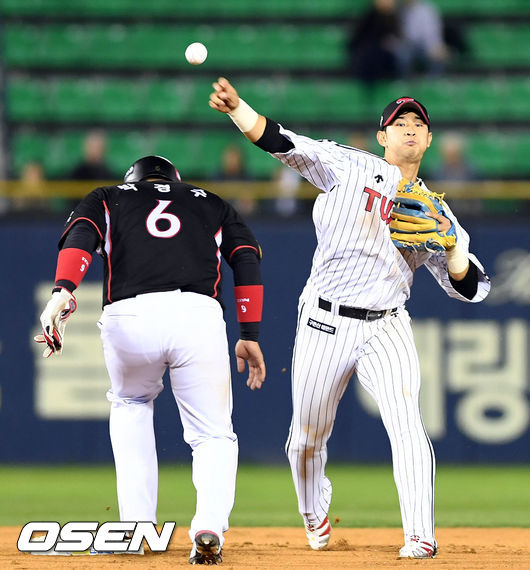 고정 라인업을 밀어붙이는 류 감독은 강승호를 개막전부터 31경기 모두 선발 2루수로 출장시켰다. 수비 이닝(260이닝)은 KBO리그 6위다. 내야수로는 3번째로 많이 출장했다. 2루 수비에서는 실책 6개를 기록(2루수 중 정근우와 함께 최다 실책). 그런데 실책이 결정적인 실점으로 연결된 일은 적다. 유격수 오지환과 키스톤 플레이는 무난하다.