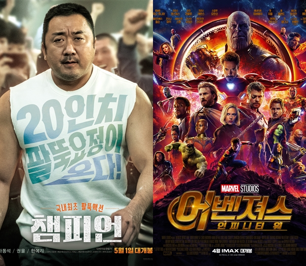 마블영화 ‘어벤져스:인피니티 워’(이하 어벤져스3)가 개봉 첫날부터 독보적인 인기로 흥행 신기록을 세우고 있는 가운데, 오늘 마동석 주연의 한국영화 ‘챔피언’(감독 김용완)이 개봉한다.