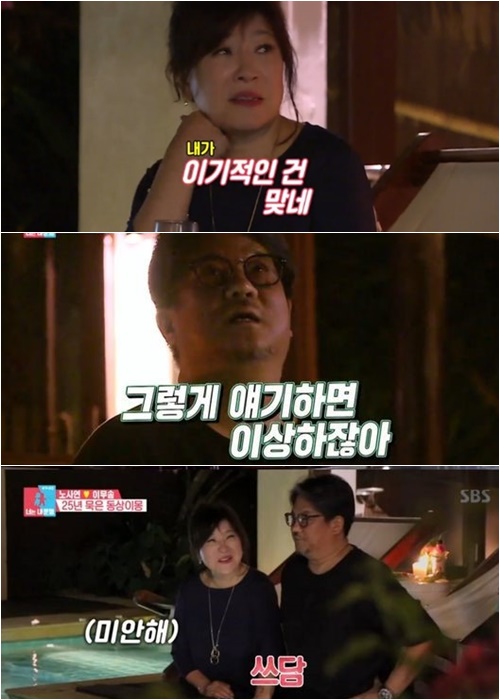 결국 제작진의 설득에 두 사람은 다시 자리에 가서 앉았다. 어색한 침묵. 하지만 두 사람은 과거를 회상하며 곧바로 화해 무드를 조성했다. 그리고 "사랑해"란 말을 주고받았다. 출연진은 "원래 부부가 다 저런 거다"라며 공감했다.