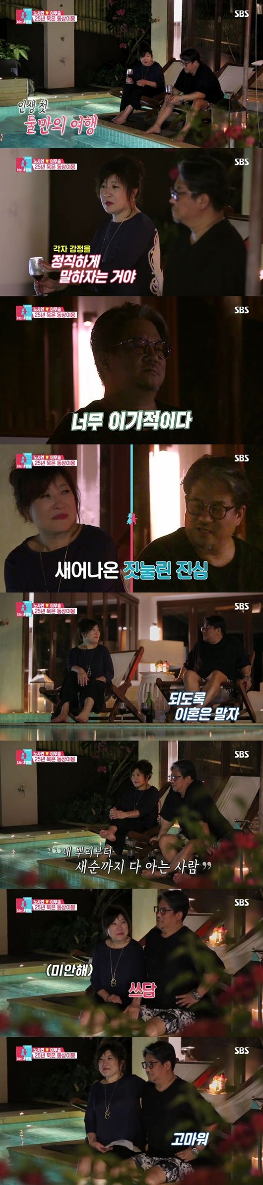 노사연은 “기대하지 말자는 거다”라고 말했고, 이무송은 대화를 이어가기 위해 “노력한 흔적이 보여?”라고 물었다. 이에 노사연은 “얼마나 잊고 있던 분위기였던 것 알지? 별거 아니다. 우리만 안 했던 거다”라고 답했다.