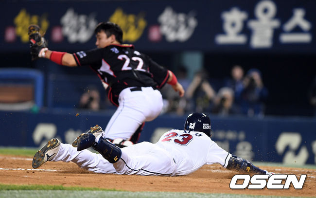 정진호는 여유있게 홈으로 들어오며 올 시즌 1호, 통산 84번째 그라운드 홈런의 주인공이 됐다. 정진호 개인으로도 첫 번째 그라운드 홈런이었다. / bellstop@osen.co.kr
