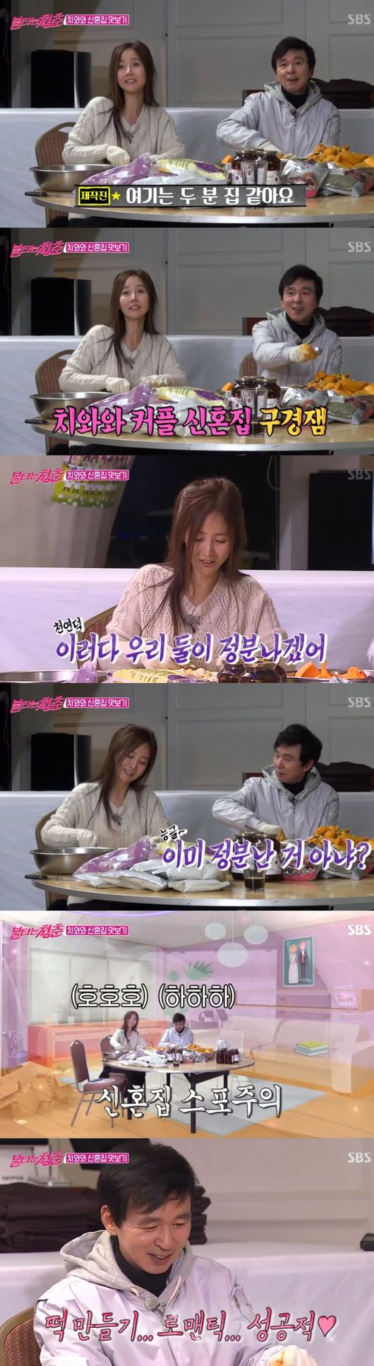 두 사람은 재료를 준비하며 꽁냥꽁냥했고, 제작진은 "신혼집 같다"고 말했다. 김국진은 강수지에게 "이러다 우리 정분 나겠다"고 너스레를 떨었고, 강수지는 "그럼 오빠 좋은 거 아니냐"고 말했다.