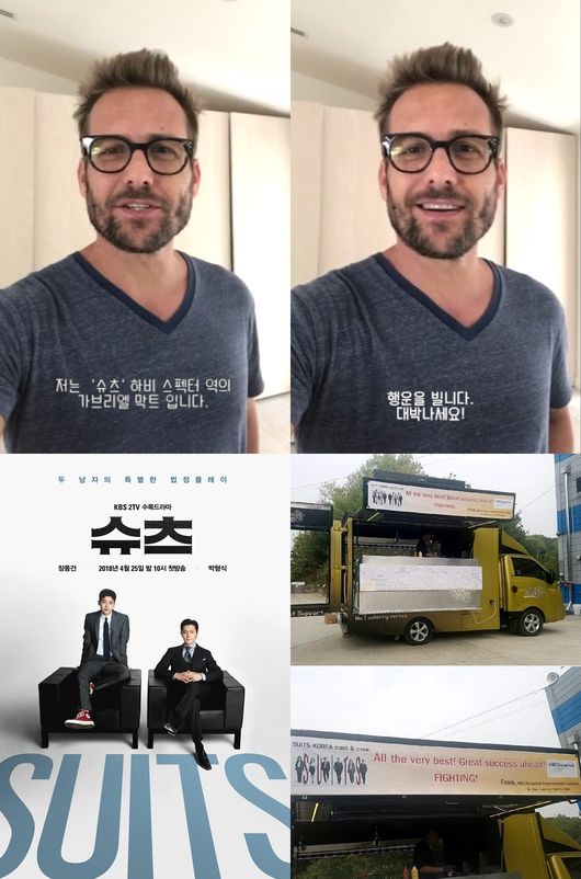 지난 5월 1일 ‘슈츠(Suits)’ 촬영장에는 원작의 제작사와 배우들이 보낸 분식차가 깜짝 등장했다. 분식차에는 “All the very best! Great success ahead! FIHTING! -From NBCUniversal International Formats & the cast of SUITS USA-”라는 힘찬 응원 문구가 담겨 있었다.