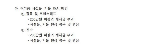 연맹이 곽광선에게 부과한 500만 원의 제재금은 전자인 '200만 원 이상의 제재금 부과'에 해당된다. 후자인 '시설문, 기물 원상 복구 및 변상'은 곽광선 개인이 전북에 변상해야 하는 부분이다.