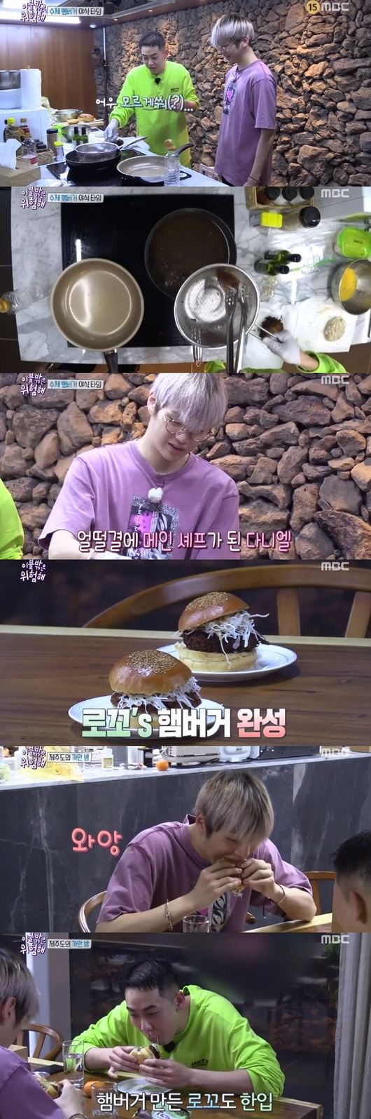 '이불 밖은 위험해' 강다니엘 로꼬가 수제버거 만들기에 도전했다.