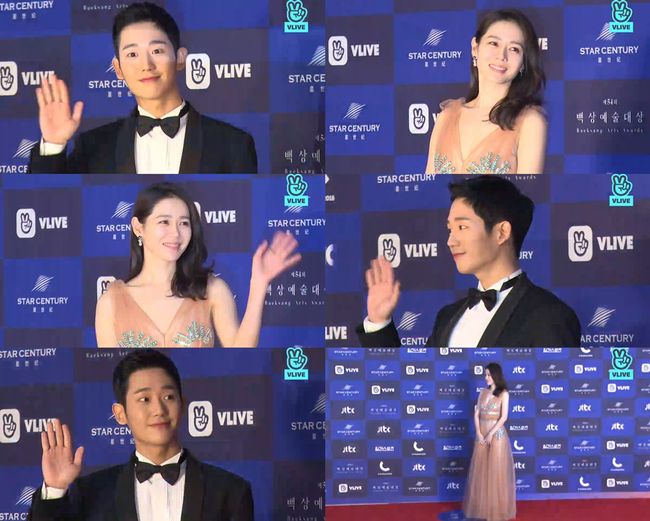 이날 정해인이 멋지게 턱시도를 차려 입고 레드카펫에 먼저 등장했다. 이후 포토타임을 마치고 무대 뒤로 떠났다.