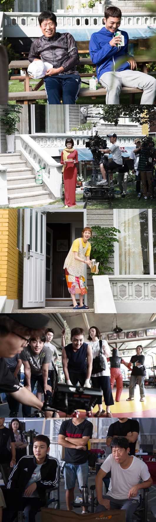 특히 유해진은 섬세한 고민을 통해 디테일을 살려 매 장면에 완성도를 더하고 김민재는 각고의 노력을 통해 모든 레슬링 경기 장면을 직접 소화한 것으로 전해져 배우들의 남다른 열정을 느끼게 한다. 이어 촬영이 끝난 후에는 여유로운 미소를 띠고, 나란히 앉아 때로는 진지하고 때로는 유쾌한 호흡을 보여주는 유해진과 김민재는 서로에 대한 각별한 배려와 애정으로 남다른 부자 케미를 엿볼 수 있게 한다.