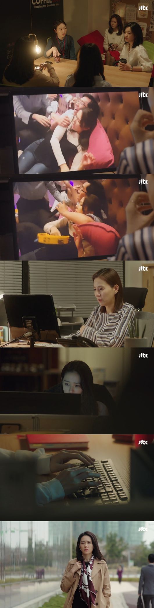 4일 오후 방송된 JTBC 금토드라마 ‘밥 잘 사주는 예쁜 누나’(극본 이은, 연출 안판석)에서 윤진아(손예진 분)는 정영인(서정연 분)의 제안에 그간의 성추행 피해 사실을 사내 서버에 밝히는 모습이 그려졌다.