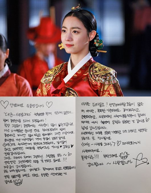 류효영은 ‘대군’에서 사랑보다 권력을 중시하는 여인 윤나겸 역을 맡아 첫 사극임에도 연기 호평을 받았다. 이에 류효영은 5일 오전 소속사를 통해 종영의 아쉬움과 감사한 마음을 동시에 담은 자필편지를 공개했다.