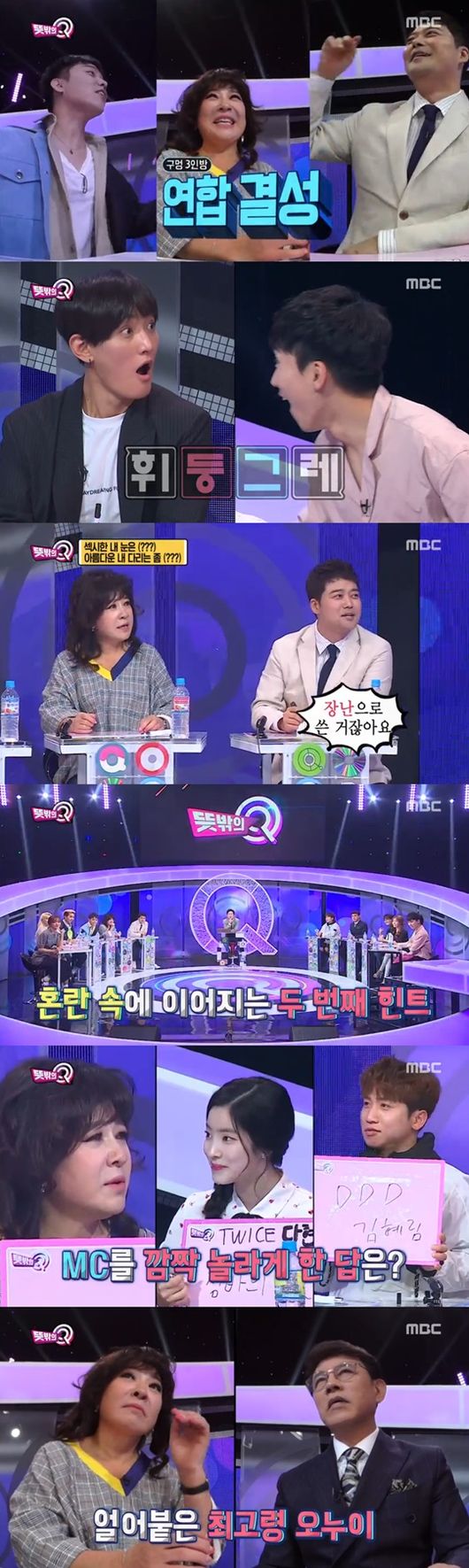 5일 오후 첫 방송된 MBC 예능 프로그램 '뜻밖의 Q'에서는 12명의 뮤지션이 시청자의 음악 문제를 푸는 모습이 그려졌다.