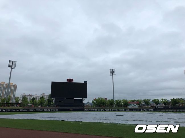하지만 이날 새벽부터 광주지역에 빗방울이 떨어졌다. 빗줄기는 얇았지만 이 비가 오전 내내 이어지고 있다. 일단 전날 대형방수포를 덮어놓으면서 그라운드를 보호했지만 빗줄기가 지속적으로 이어지고 있다.
