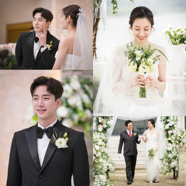 공개된 사진 속 이준호는 턱시도를 멋지게 차려 입은 채 환한 미소를 짓고 있다. 신부에게 달달한 눈빛을 보내는 이준호의 모습이 더없이 행복한 시간을 보여준다. 정려원 역시 다른 결혼식장에서 순백의 아름다운 웨딩드레스 자태를 뽐내고 있다. 부케를 들고 있는 정려원의 모습에서는 결혼식을 앞둔 설렘이 고스란히 느껴진다.
