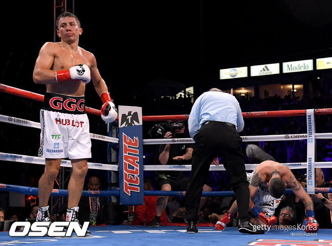 골로프킨은 6일(이하 한국시간) 바네스 마티로시안(32)을 상대로 미국 캘리포니아 스텁 허프센터 특설링서 미들급 통합 타이틀 방어전에서 2라운드만에 상대를 돌주먹으로 눕히며 KO 승리를 거뒀다.