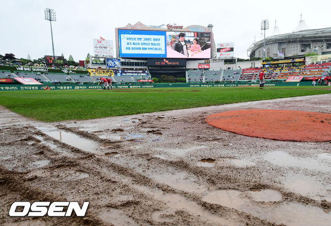 인천 지역은 밤부터 계속 비가 내렸다. 정오부터는 빗줄기가 가늘어지며 방수포를 해체하고 경기를 준비했다. 하지만 비가 가늘게라도 계속 내리는 상황이라 어려움을 겪었다. 1,3루 베이스 쪽에 진흙이 많아 긴급 복토 작업을 했으나 비가 계속 내려 제대로 된 정비가 되지 못했다. 파울 플라이가 중요한 양쪽 덕아웃 앞도 난장판이 됐다. 워닝트랙은 거의 진흙이었다는 후문이다.