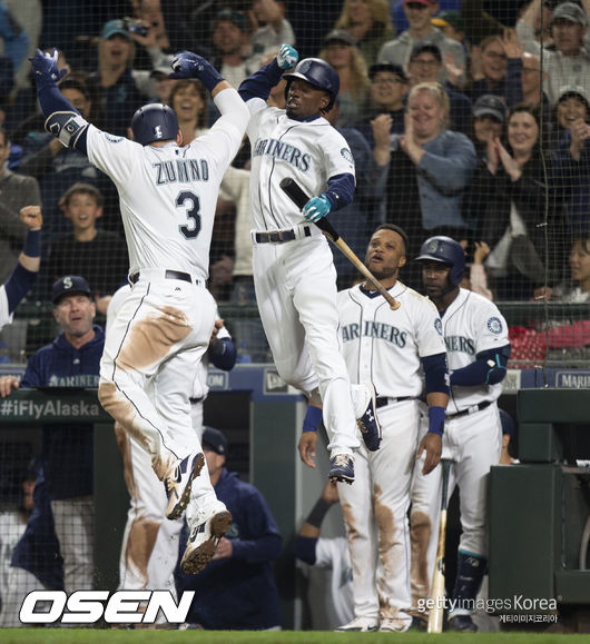 시애틀은 11회말 카일 시거의 동점 2루타가 터졌다. 이어 라이언 힐리가 끝내기 안타를 때려 긴 승부에 마침표를 찍었다. / jasonseo34@osen.co.kr