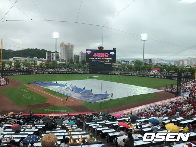 1회초 NC가 나성범과 스크럭스의 백투백 홈런으로 2-0으로 앞서간 상황. 하지만 1회말 종료 후 빗줄기가 굵어지면서 오후 2시 26분에 우천 중단됐다.