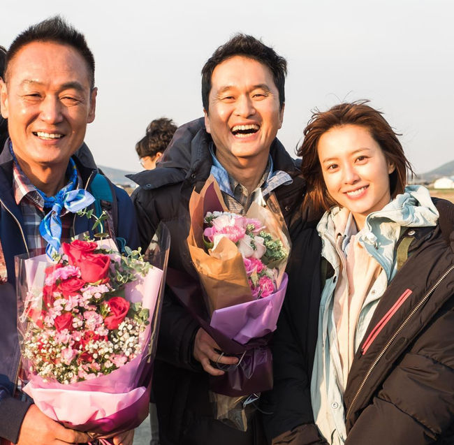 사진 속에서 정유미는 장현성, 이얼과 함께 환하게 웃고 있는 모습이다. 세 배우는 극 중 홍일 지구대에서 호흡을 맞췄다.