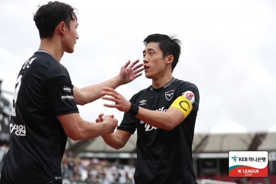 성남은 6일 오후 2시 성남 탄천종합운동장에서 열린 수원FC와의 2018 KEB 하나은행 K리그2 10라운드 경기에서 2-1로 이기며 10경기 무패 행진을 이어갔다. 4연승을 달린 승점 22점(6승 4무)의 성남은 K리그2 단독 선두 자리를 굳건히 했다.