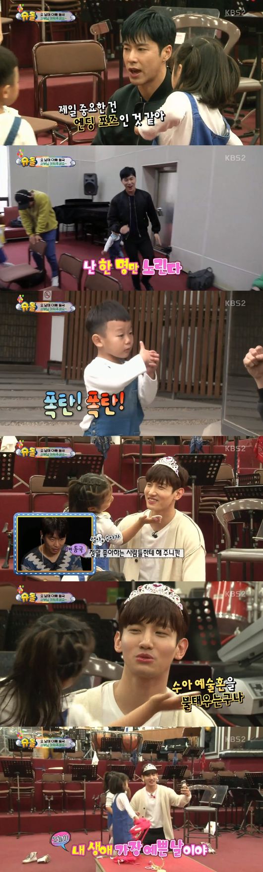 지난 5일 오후 방송된 KBS 2TV '슈퍼맨이 돌아왔다'에서는 설수대 오남매가 무사히 창작동요제 무대를 마치는 모습이 그려졌다. 노래를 잘하지 못하는 설수대 오남매를 돕기 위해서 이석훈과 동방신기가 나섰다.