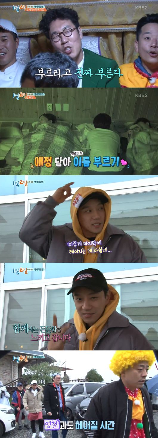 '1박2일' 멤버들 역시 따스하게 김영철과 황치열을 대했다. 두 사람은 멤버 평가에서 김영철과 황치열을 각각 1위와 2위로 뽑으면서 실내취침을 선물했다. 함께 실내취침을 하면서 김영철의 본명을 부르면서 다정하게 불렀다.