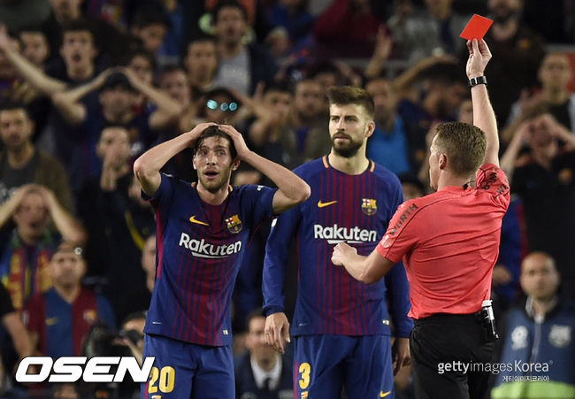 치열하던 승부의 변수는 전반 종료 직전 생겼다. 세르히 로베르토가 마르셀루를 가격하며 퇴장을 당한 것.