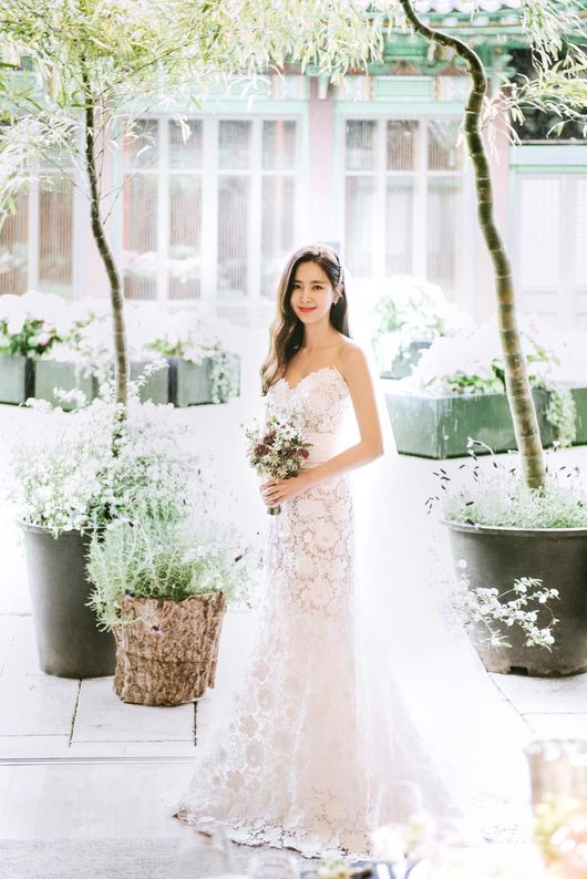 드레스 역시도 특별했다. 한복 디자이너 박술녀의 SNS를 공개된 한채아의 한복 입은 자태는 아름다웠다. 그리고 7일 오전에는 소속사를 통해 웨딩 사진을 공개했다. 순백의 웨딩드레스를 입은 한채아는 한복을 입었을 때와 전혀 다른 분위기로 고혹스러운 기품을 느끼게 했다.