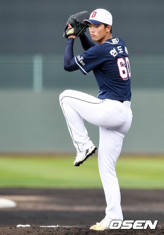 현도훈은 아직 프로 무대를 밟지 않은 '신인'이다. 프로 입단도 두산이 처음이다. 초등학교 졸업 후 일본으로 넘어간 그는 대학교 때까지 일본에서 야구를 배웠고, 졸업 후 한국으로 넘어와 파주 챌린저스에 입단했다. 그리고 이를 눈여겨 본 두산은 지난해 현도훈을 육성선수로 영입했다.