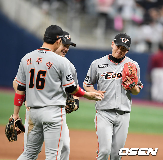 더구나 그 홈런은 정은원의 야구인생 중 최초의 홈런이었다. 중고교시절 한 번도 홈런을 쳐본 적이 없는 그였다. 한용덕 감독은 “원래 수비가 좋은 선수다. 스윙을 공격적으로 하길래 넣었는데...허허”라며 웃었다.