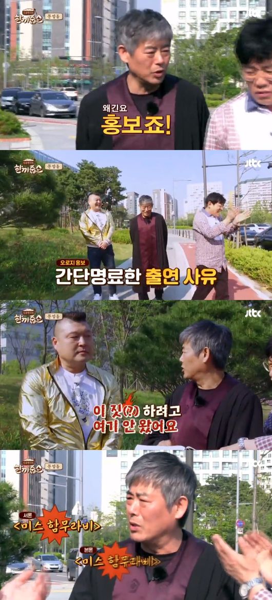 ‘밥동무의 홍보타임은 한 끼 성공을 전제로 30초만 주어진다’, ‘같은 JTBC 작품일 경우 최소 3번 이상 제목을 언급한다’는 항목을 보고 성동일은 “방송 용어로는 격이 떨어지지만 30초 ‘이 짓’하려고 여기 안 왔다. 최소한”이라면서 JTBC 새 월화드라마 ‘미스 함무라비’를 외쳐 규동형제를 폭소케 했다.