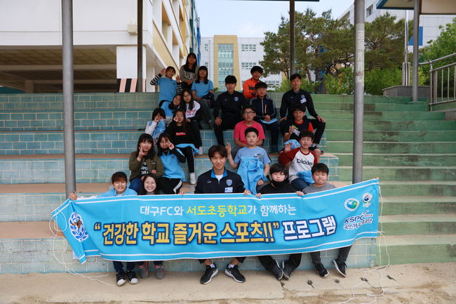 서도초에서는 팬사인회, 체육수업, 점심식사 순으로 프로그램이 진행됐다. 체육수업에는 6학년 학생 20명이 참가했다. 선수들은 자기소개를 하고 학생들에게 대구FC 어린이 티셔츠를 나눠준 이후 본격적인 체육수업을 시작했다. 선수들과 드리블, 패스, 볼 트래핑 등 축구 기본기를 배우는 시간을 가졌다. 이후 수업은 미니게임으로 이어졌다. 학생들은 선수들과 한 편이 되어 축구를 하면서 즐거운 추억을 쌓았다.